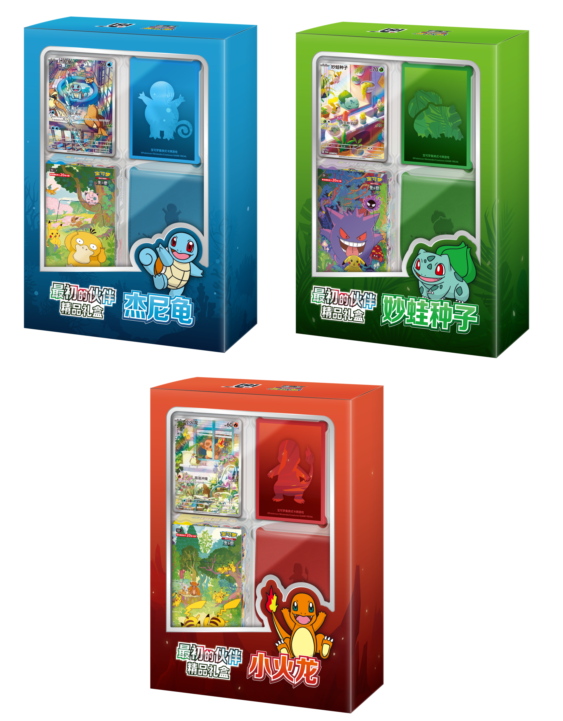 Inclui sleeves e uma caixa para armazenar cartas com o tema de cada gift box, e 1 Booster Pack Jumbo (20 cartas) Collect 151.