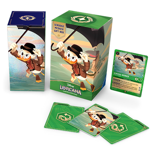 The Scrooge McDuck Gift Box has quite a few items in it. The package contains one Scrooge McDuck — S.H.U.S.H agent glimmer foil card, five booster packs, one Scrooge McDuck storage box, and three punch-out dividers. The art for the Scrooge McDuck card is all-new, and the beautiful box will keep everything safe, so it could be a worthwhile investment for both Frozen and Disney Lorcana fans. The Scrooge McDuck Gift Box is themed in a purple color, with the game’s iconic gold accents.
